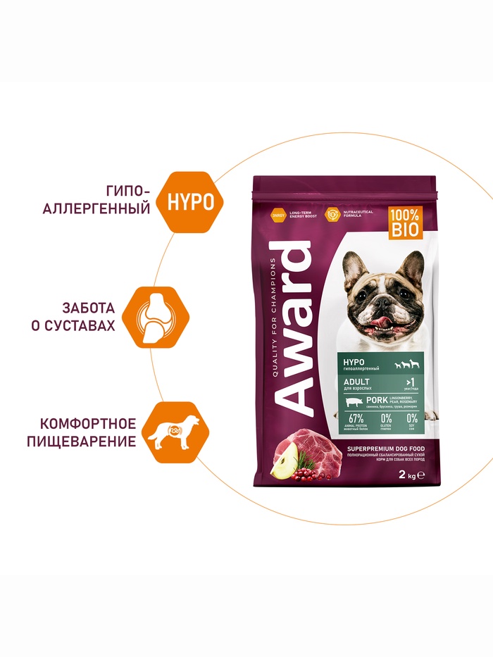 Сухой корм AWARD HYPO для вз-х собак всех пород свинина/брусника/груша и розмарин 2 кг