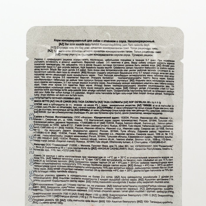 Влажные корма для собак используются в разных смешанных рационах. Их можно давать в дополнение к натуральной пище или сухим гранулам. Норма кормления указана на упаковке.