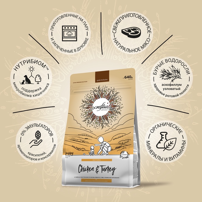 Сухой корм CRAFTIA NATURA для щенков миниатюрных и мелких пород из курицы и индейки 640 г