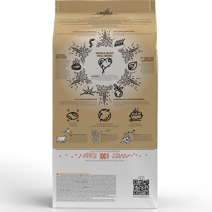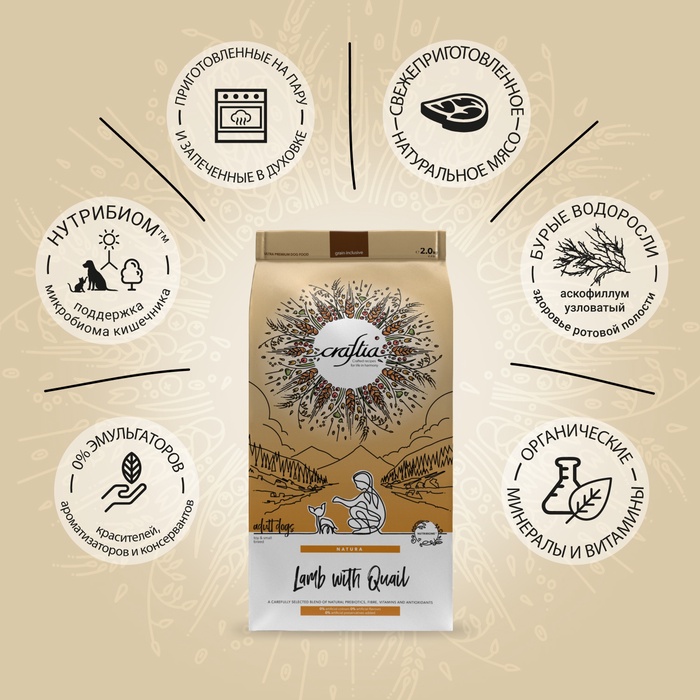 Сухой корм CRAFTIA NATURA для взрослых собак миниатюрных и мелких пород из ягненка с перепелкой 2 кг