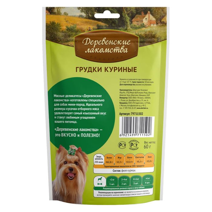 Грудки куриные «Деревенские лакомства» для собак мини-пород, 55 г