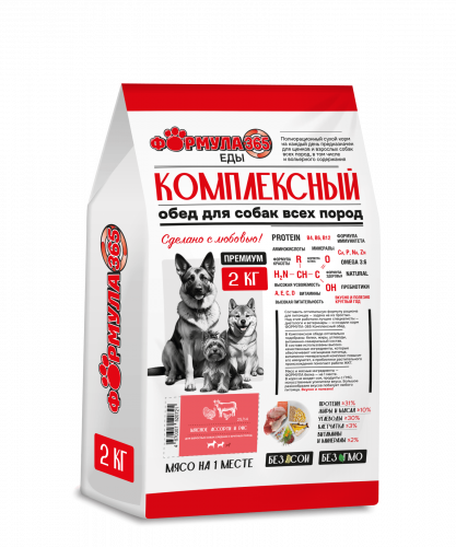 Дегидрированное мясо ( индейка 21%, курица 6%, говядина 3%, лосось 3%), рис, пшеница, кукуруза, куриный жир, растительные волокна (источник клетчатки), гидролизованные мясные белки, сухие пивные дрожжи (источник натуральных пребиотиков MOS), жир лососевый, витаминно-минеральный комплекс, семена льна, морковь сушеная, тыква сушеная, экстракт Юкки Шидигера