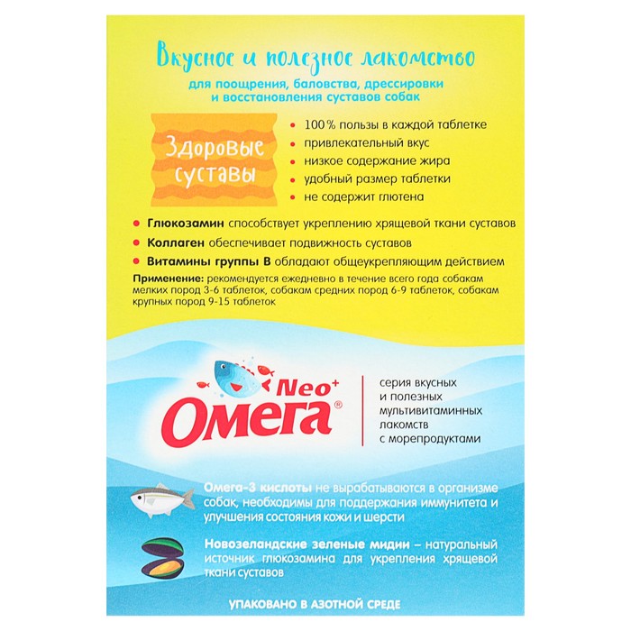 Лакомство Омега Neo+ «Здоровые суставы» для собак, с глюкозамином и коллагеном, 90 табл