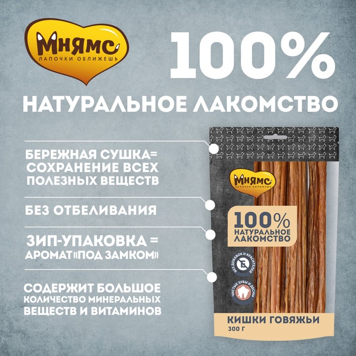 Лакомство «Мнямс» для собак, кишки говяжьи, 300 г