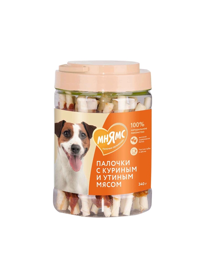 Лакомство «Мнямс» для собак палочки с куриным и утиным мясом, 340 г