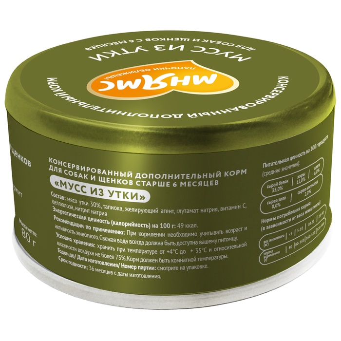 Влажный доп.корм Мнямс На каждый день Мусс из утки для собак и щен. старше 6 мес. 80 г