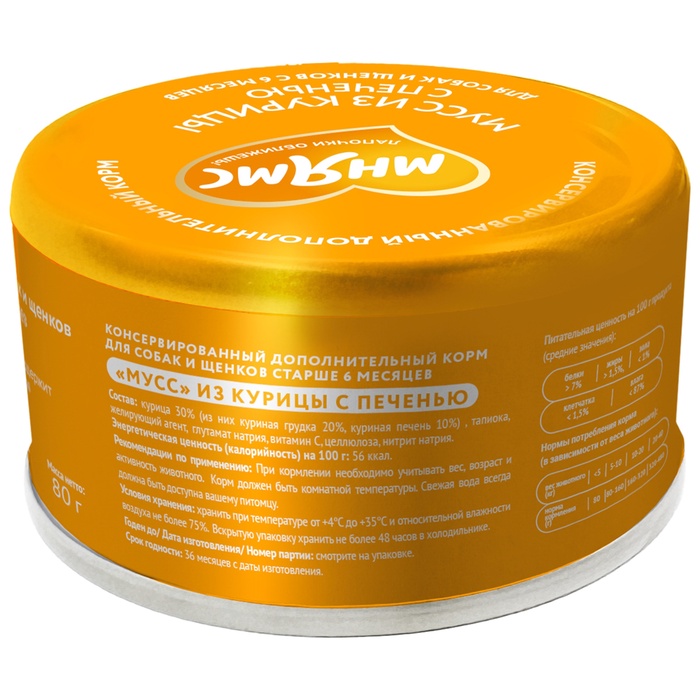 Влажный дополнительный корм Мнямс На каждый день Мусс из курицы/печени для собак и щенков старше 6 мес. 80 г