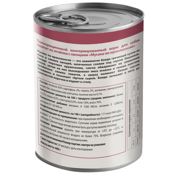 Когда хочется чего-то нестандартного — но по-настоящему близкого к природе. Влажный паштет для собак всех пород с ягнёнком и морковью — деликатес в жестяной банке 200 г. Создан как вкусовое дополнение к основному рациону для взрослых собак от 1 до 5 лет. Подходит всем породам — от болонки до хаски.
