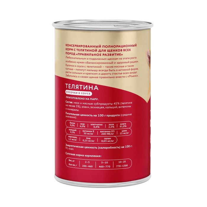 Влажный корм «Мнямс» «ПРАВИЛЬНОЕ РАЗВИТИЕ» для щенков, телятина в соусе, 400 г