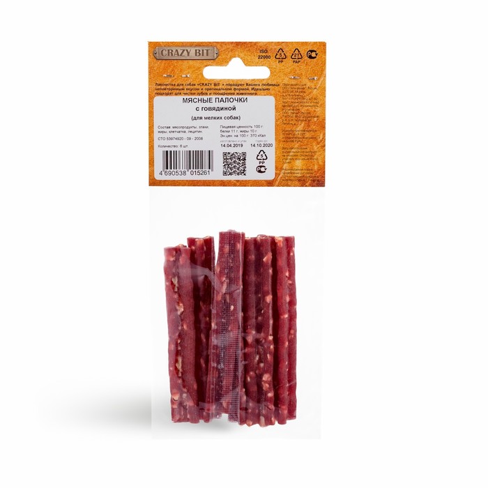 Мясные палочки для чистки зубов TitBit Crazy Bit для мелких собак, с говядиной, 6 шт., 50 г