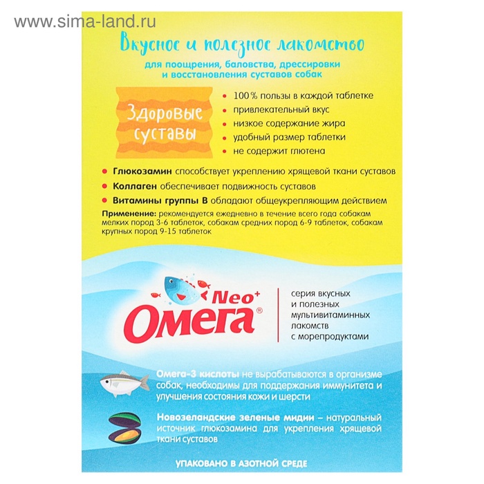 Лакомство Омега Neo+ «Здоровые суставы» для собак, с глюкозамином и коллагеном, 90 табл