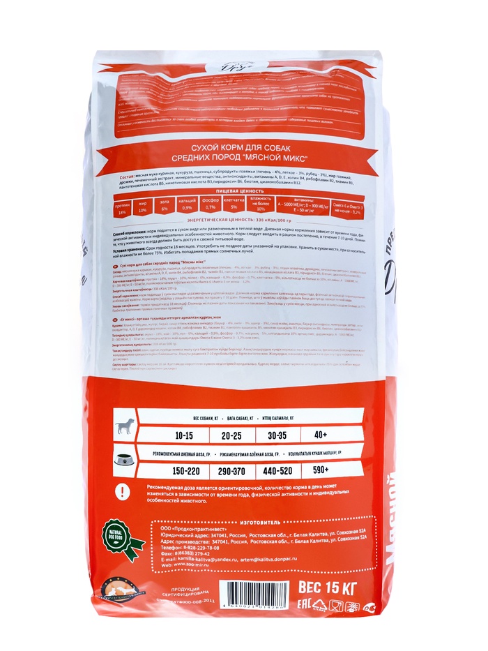 Сухой корм для собак “Преданный друг” создан по специальному рецепту, который учитывает особенности развития и жизни собак средних пород.