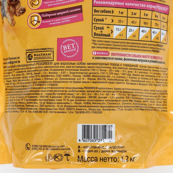 Сухой корм Pedigree для собак мини пород, говядина, 1.2 кг