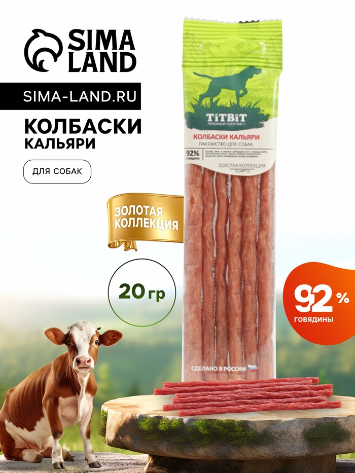 Лакомства Золотая коллекция TiTBiT– это линейка мясных лакомств, разработанных при участии владельцев домашних животных и их питомцев. Колбаски Кальяри приготовлены из говядины и дополнены щепоткой кориандра и укропа, придающих нежному вкусу изысканность.
