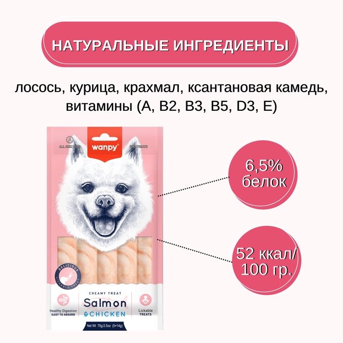 Wanpy Dog Крем лакомство для собак «нежное пюре» из лосося и курицы 70 г