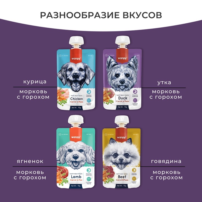 Wanpy Dog Лакомство для собак Мясной мусс из утки и моркови с горохом 90 г