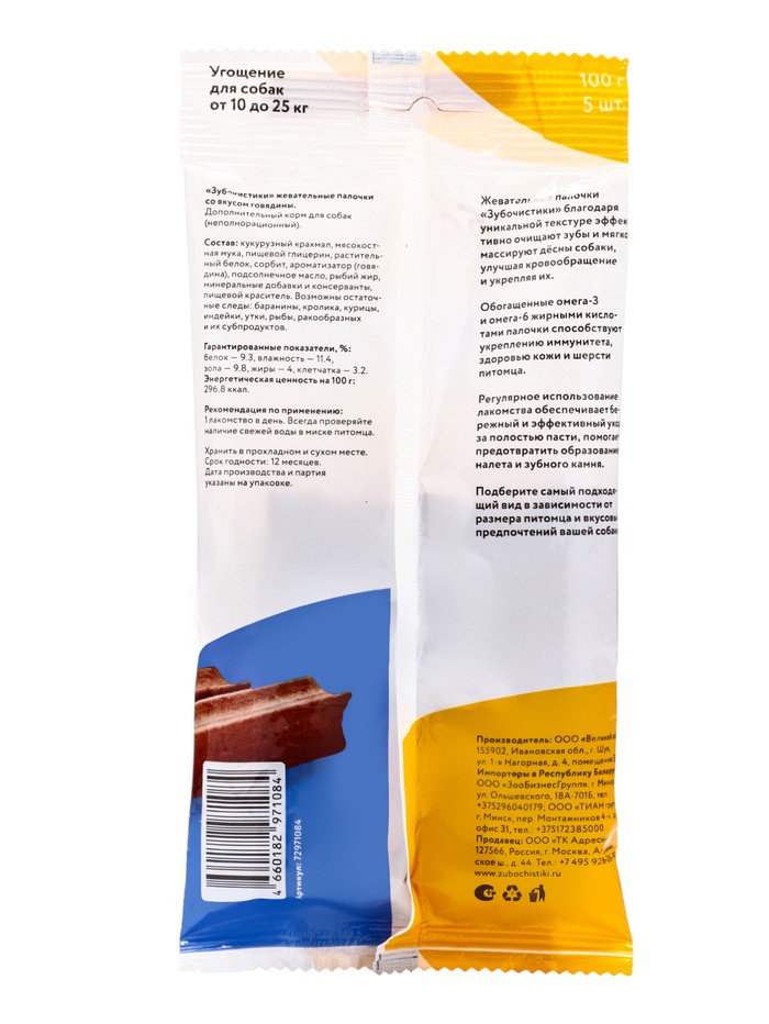 Жевательные палочки «Зубочистики» для собак средних пород, со вкусом говядины, 100 г
