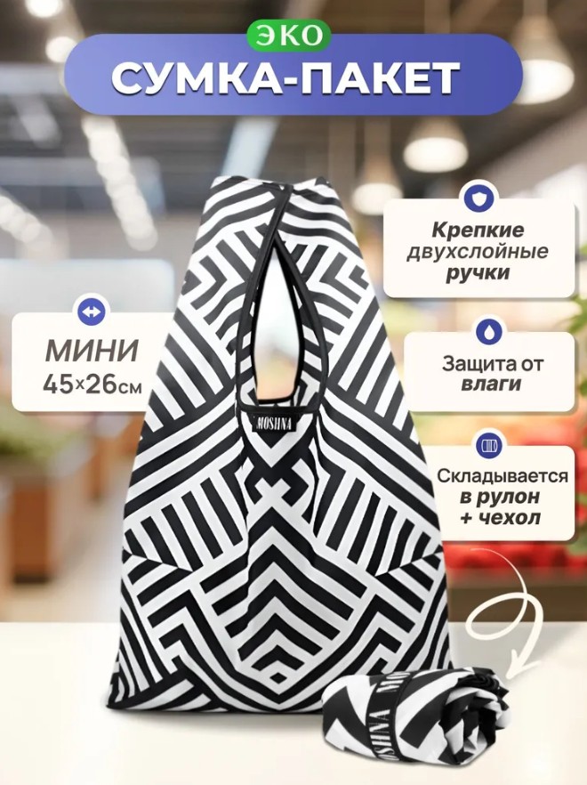 Мод.3, Майка сумка хозяйственная Принт (SM3pr) Зигзаг черно-белый