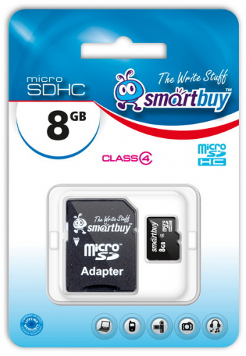 Карта памяти MicroSD Smart Buy 8GB class 4 с адаптером SD