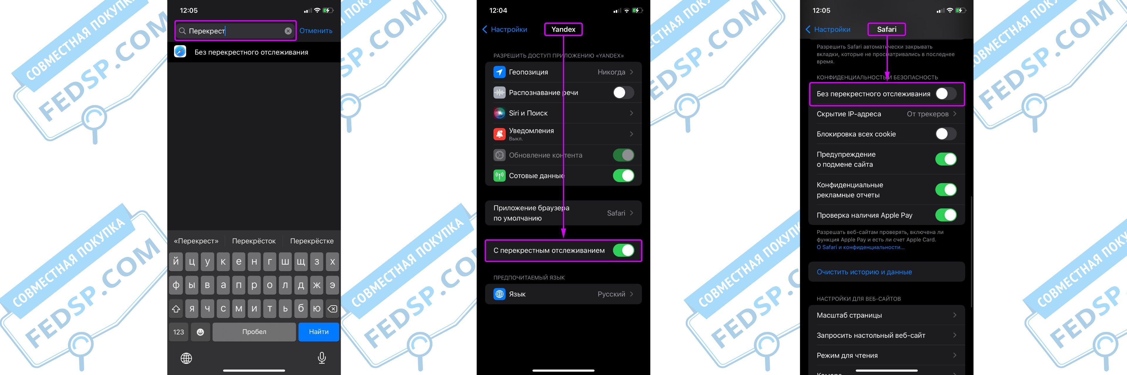 Формулировки бывают разные, например, в Yandex надо включать “с перекрестным отслеживанием”, а в Safari выключать “без перекрестного отслеживания”.