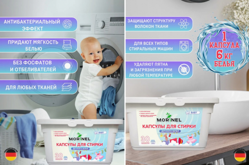470 р Капсулы для стирки детского белья Morinel 15гр*30шт ML-BB30