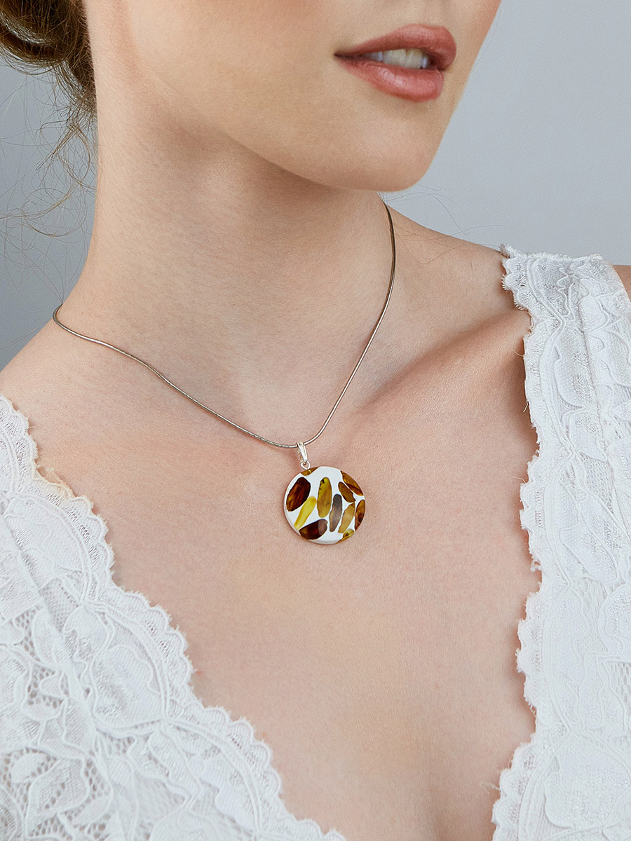 Стильная мозаичная подвеска с натуральным янтарём «Далматин»