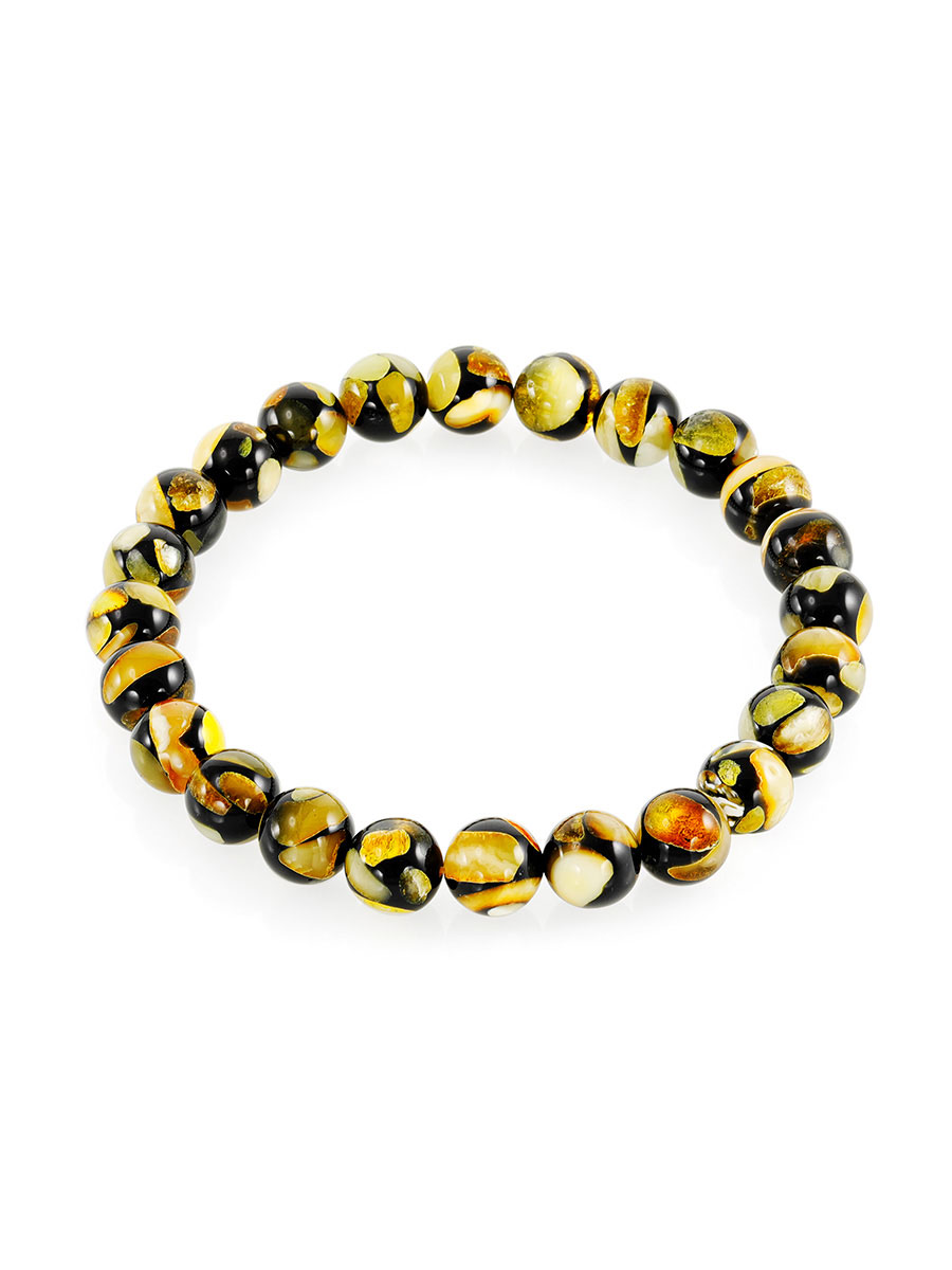 Мозаичный браслет из натурального янтаря «Далматин»